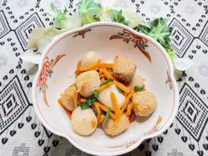 💚写真は、鶏団子を作り、にんじん、いんげんと合わせて、白だしであっさり仕上げました。栄養バランスの良い一品👌🏻です。
