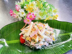 🧑🏻🍳 写真は、野菜いっぱいのマカロニサラダ、ブロッコリースプラウトとハム、にんじん、コーン、ミニトマト。これ一品で食べ応え抜群、栄養バランスもばっちりです。いかが?☺️