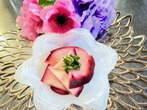 🩷”赤かぶ”・・・身がしっかりしているため、生食や漬物に適しています。特に酢漬けにすると赤い色がさらに鮮やかになり映えますよ。写真は甘酢に漬けたもの。歯ごたえと甘酸っぱさ❗。日持ちもするので、冷蔵庫に入れておくと箸休めやサラダの代わりになり重宝します。11月から1月が旬ですから、お正月用に作るのもお奨めです。美しい色を楽しみましょう💁🏻♀️。