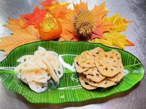 👨🏻🍳 写真は、れんこんの副菜2種、左は甘酢漬け、右はピリ辛きんぴらです。あなたはどちらがお好き💕?れんこんは今が旬!!、寒い時期美味しい😋野菜です。ねっとりとした食感と甘みが強くなります。是非召し上がってください。