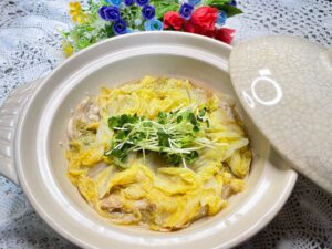 👨🏻🍳 写真は、『白菜と豚バラ肉のにんにく味噌煮』です。白菜の美味しい時期、とろとろの白菜と豚バラ肉の柔らかさがよく合います。にんにくみそのコクが食欲をそそるわたくしお奨めの一品です🥰。